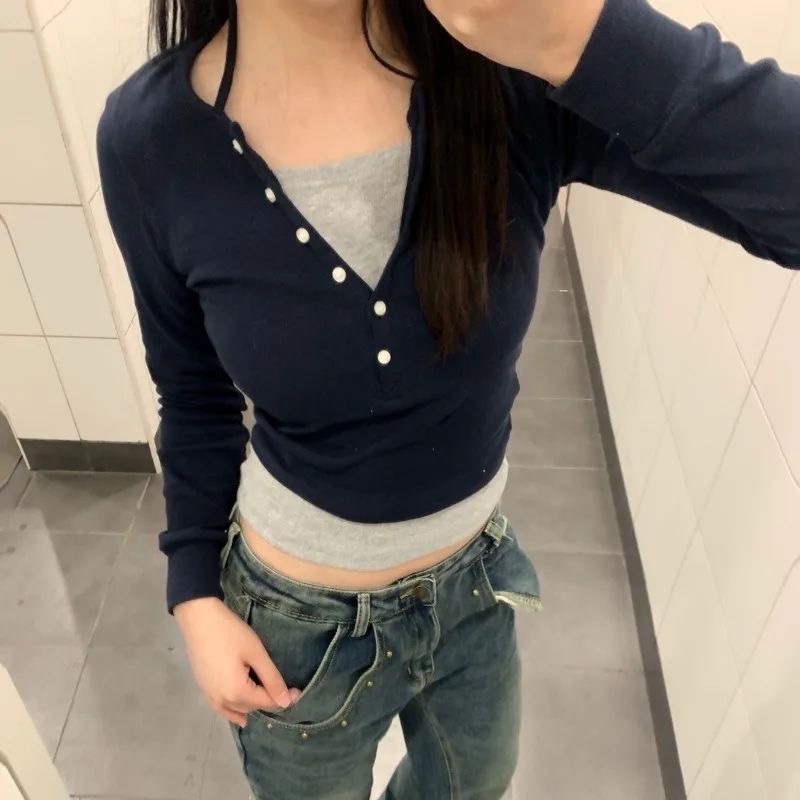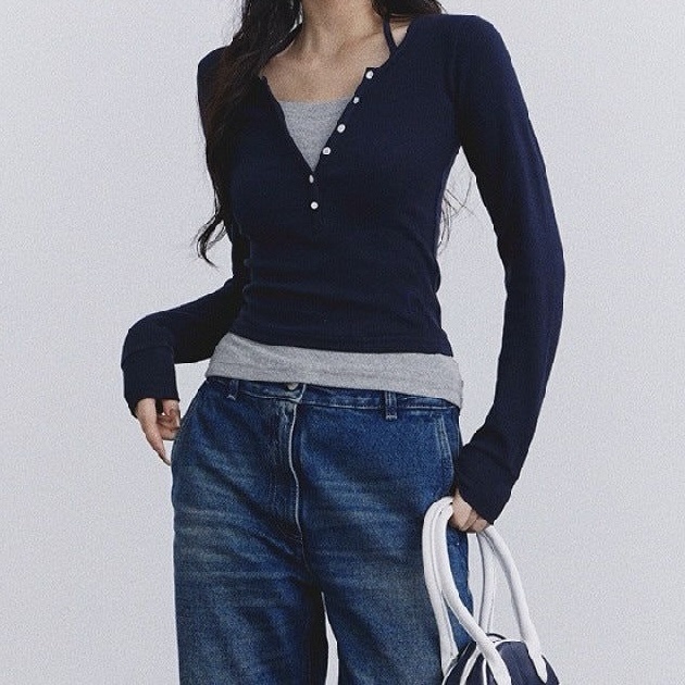 / Two Piece Navy Blue – Gray Top